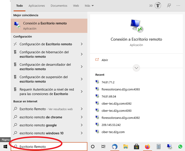 Accediendo por medio de Escritorio Remoto